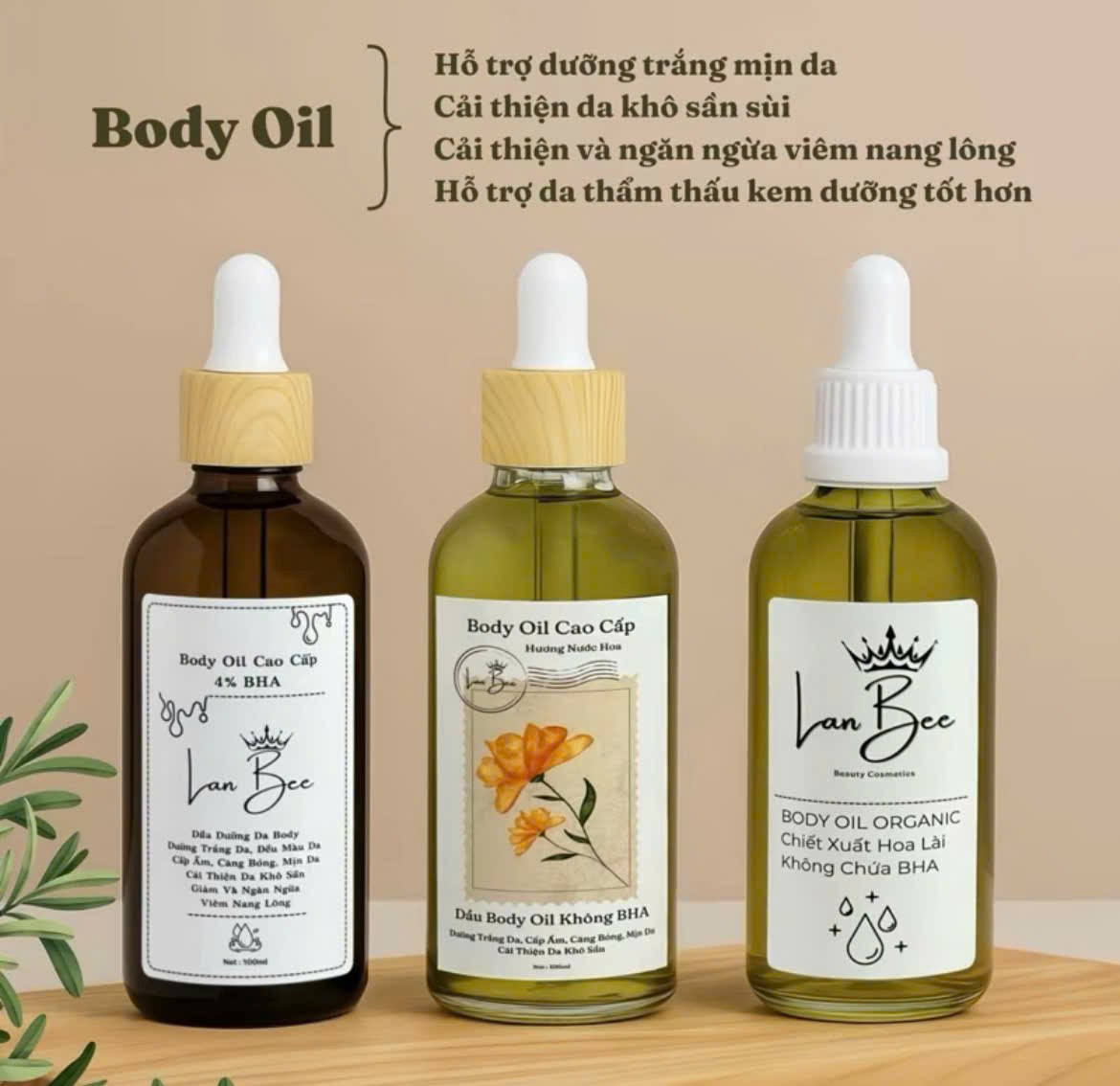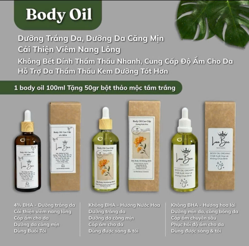 Dầu body oil của Lan Bee Cosmetic sẽ có 3 dòng cơ bản :